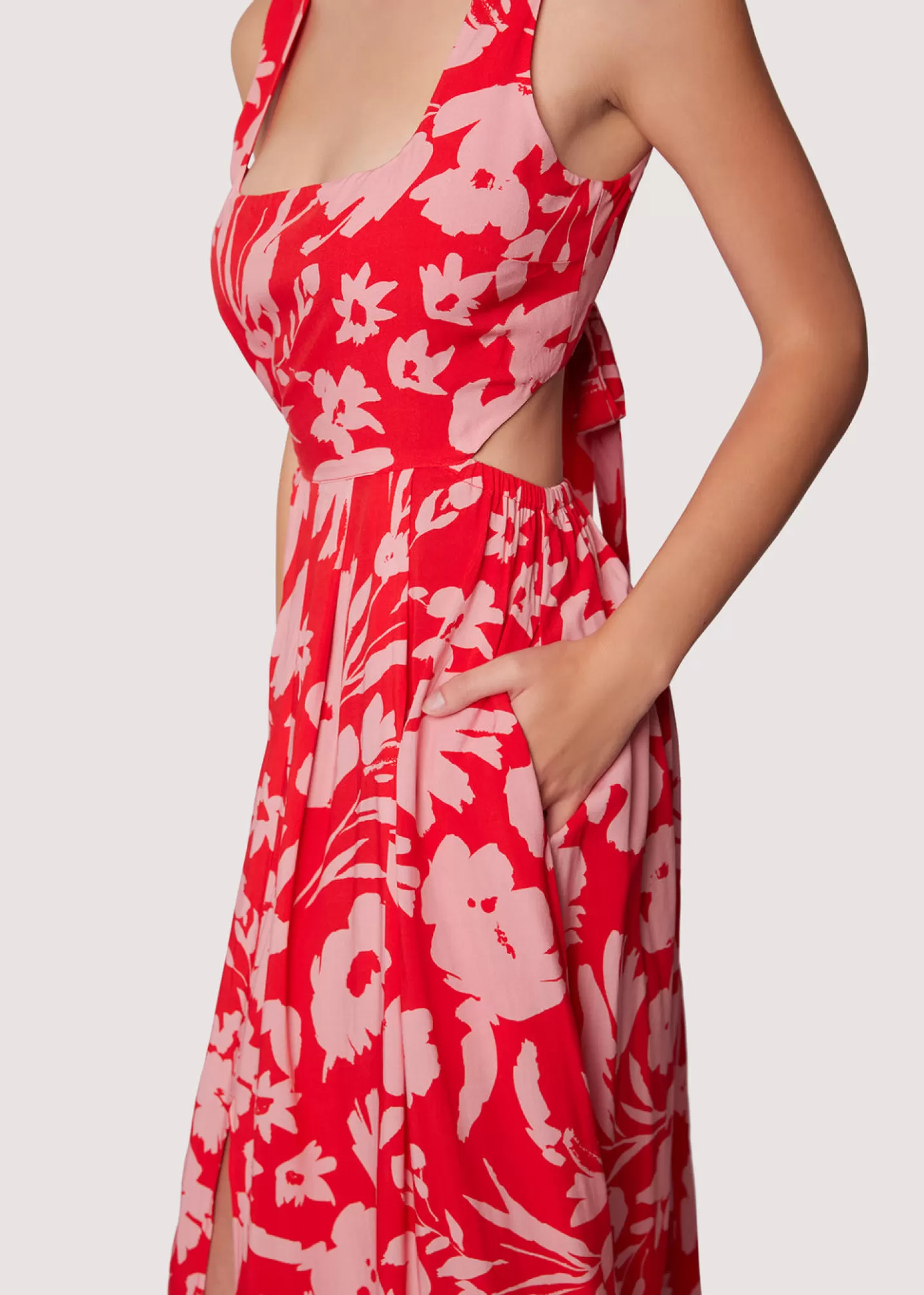 Turn up the romance with the Still The One Maxi Dress! This fun and sexy silhouette will be your go-to fit for the upcoming seasons. A vibrant pink floral print shapes a lightweight maxi dress making it your favorite travel companion. It features a square neckline and is adjusted by a back tie. The waist creates two side slits with elastic trim, and an open back. The skirt reveals leg detail from its tall, front slit.