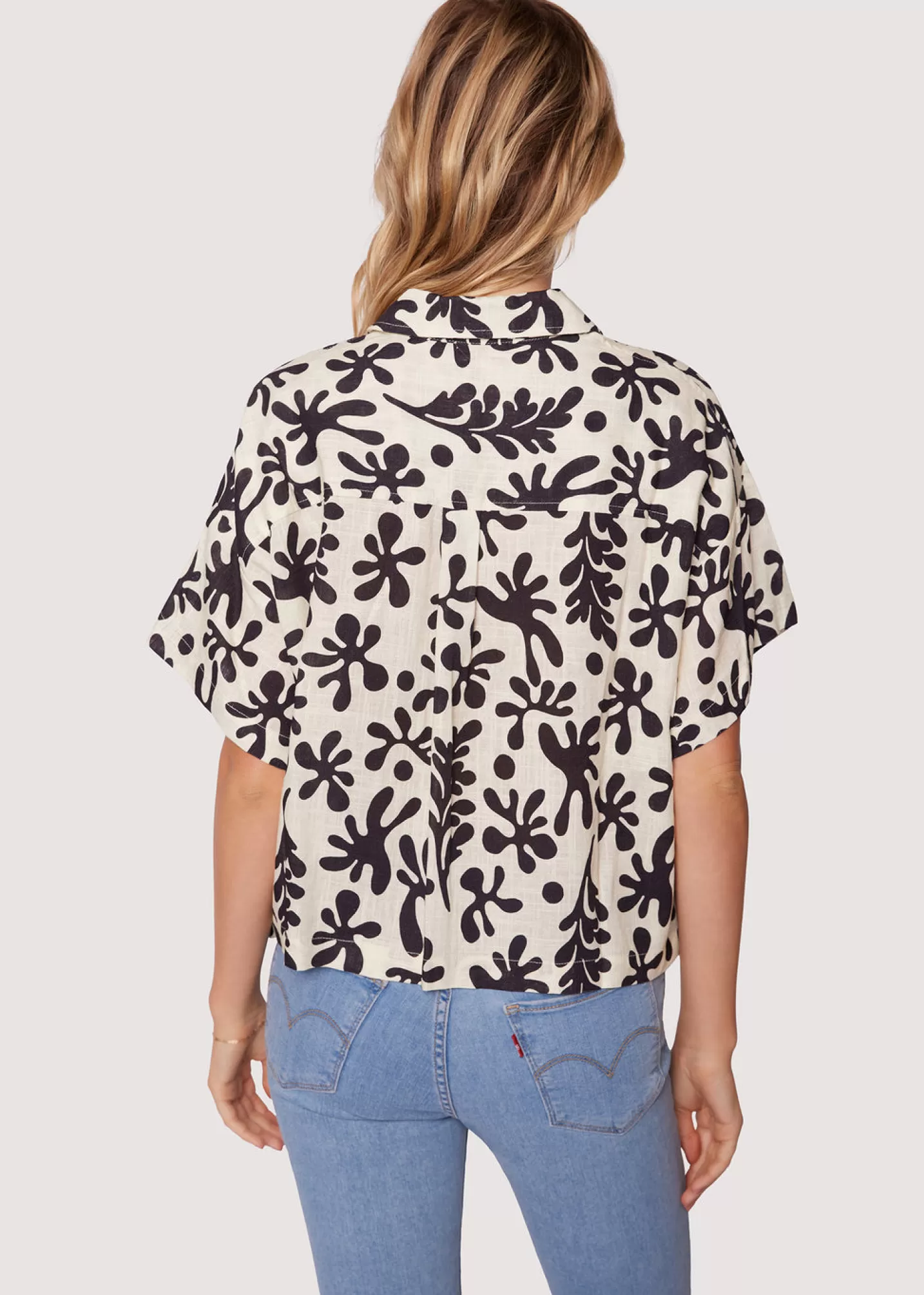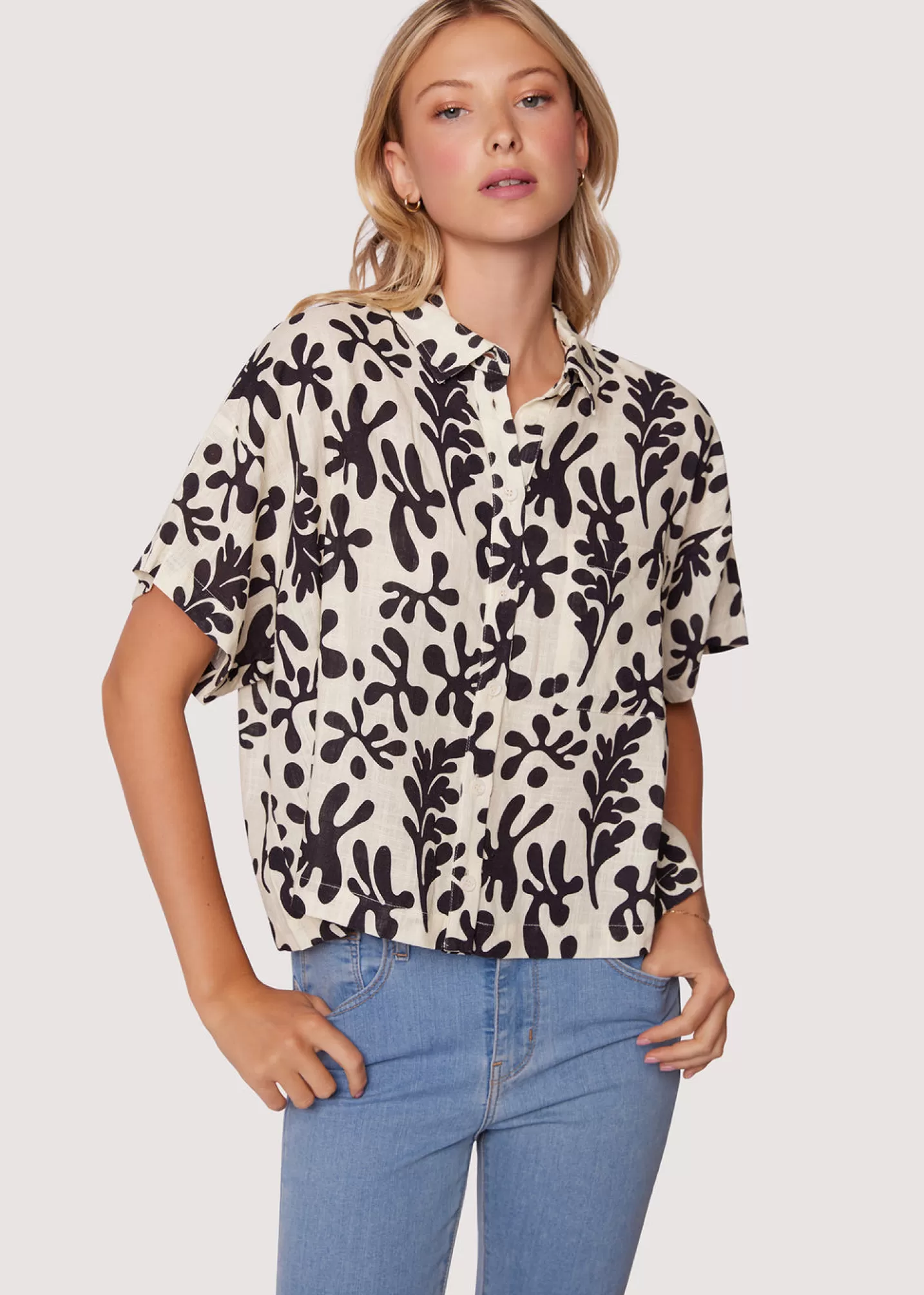Create a casual tropical look with the Minerva’s Spell Boxy Short Sleeve Top! This button down top features an oversized silhouette for ease and comfort. It displays a collared neckline and patch pocket creating the ultimate cool girl vibe. The colors keep things neutral while the print adds a cheerful element to your vacation look.