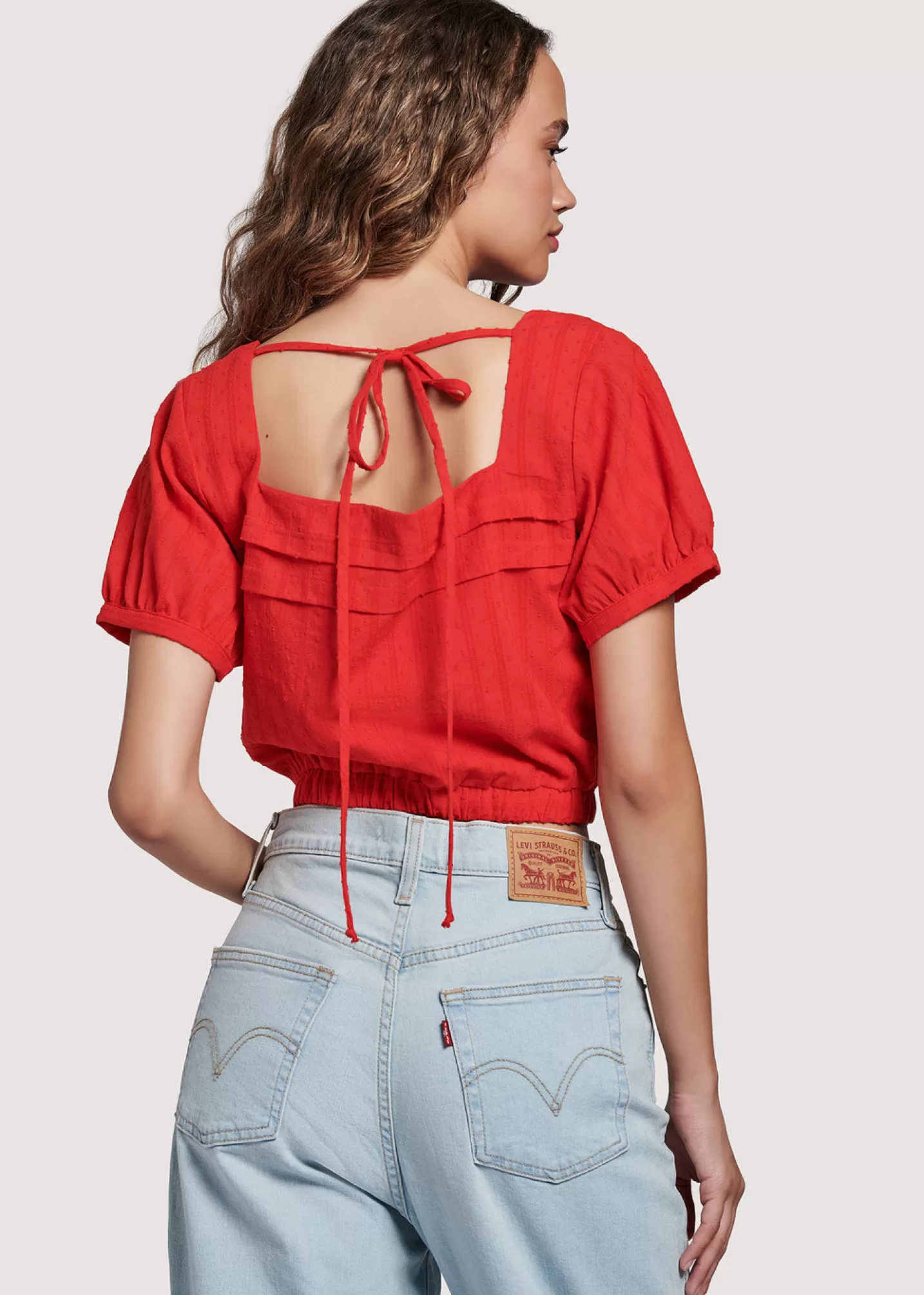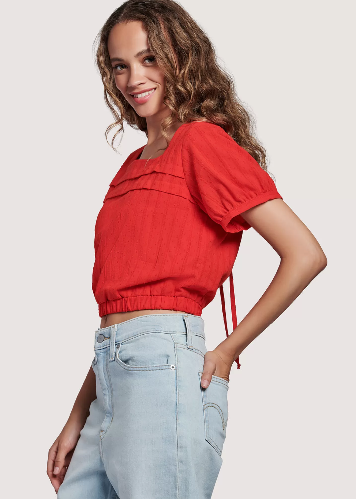 Spice up your life with the Strawberrry Waves Top! This textured fabric shapes a cropped blo…