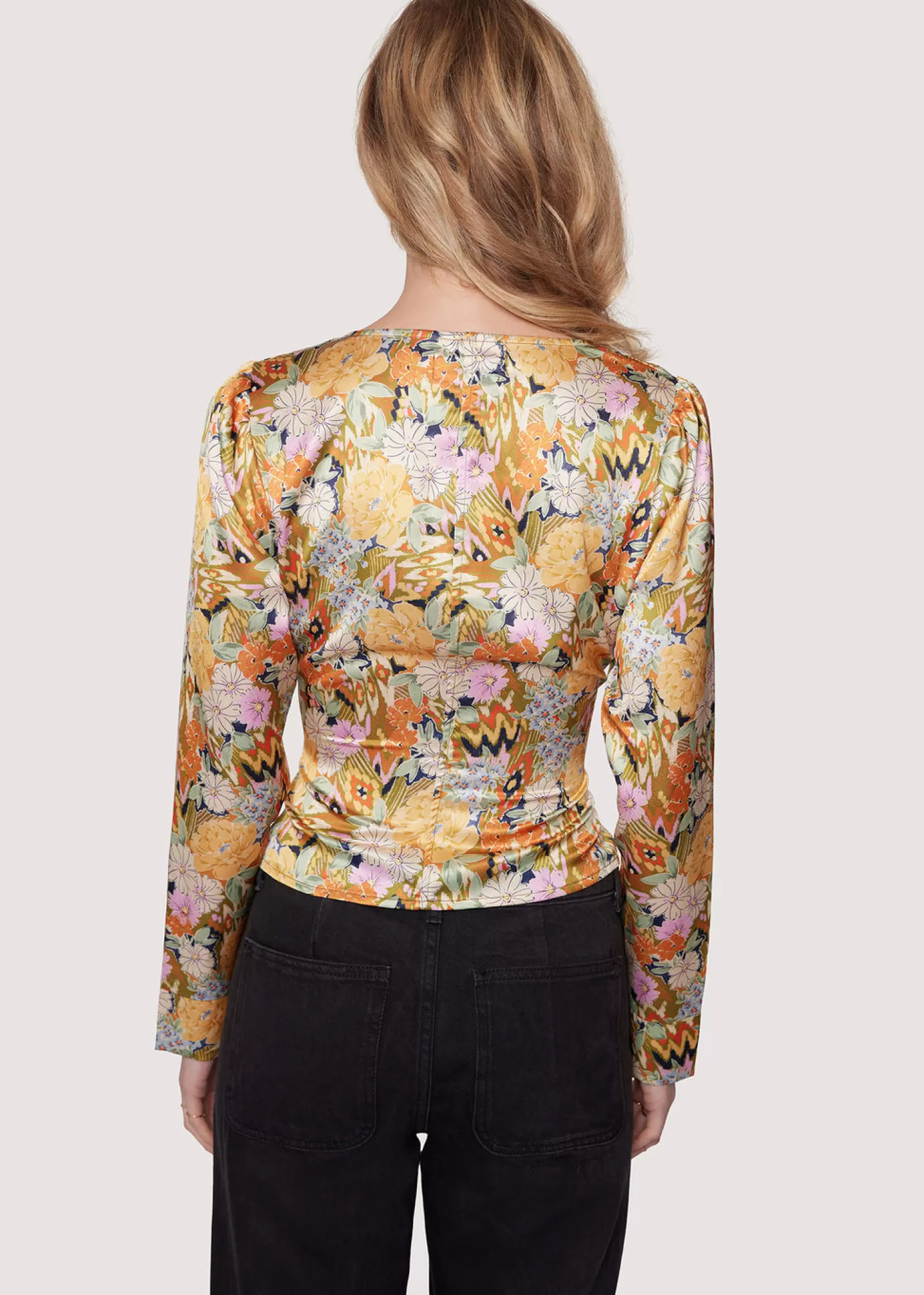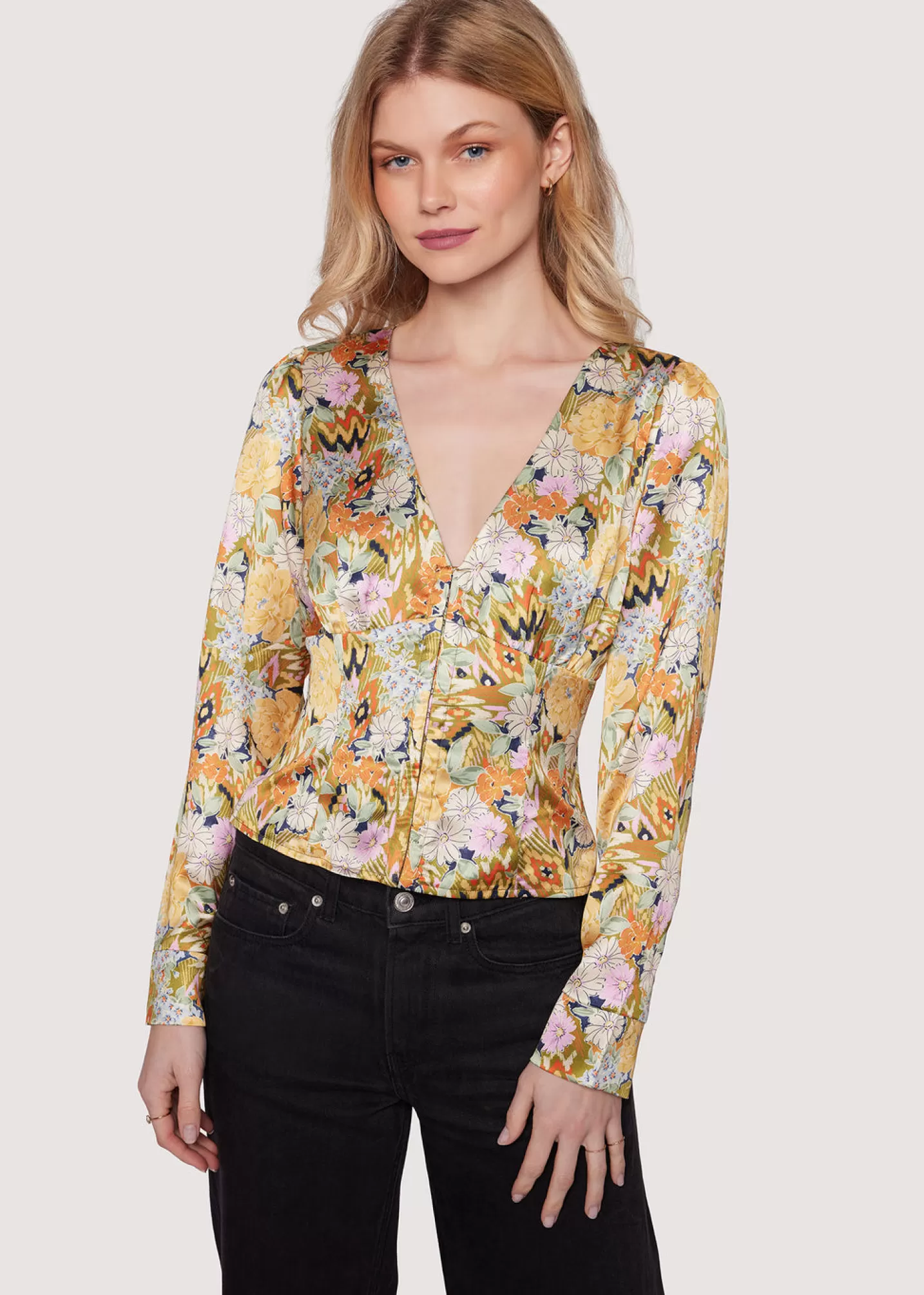 Elevate your wardrobe with the Wildflower Dusk Top. This fitted blouse features a v-neckline, long sleeves and a captivating floral print. Its timeless style ensures you’ll look effortless and chic for any occasion.